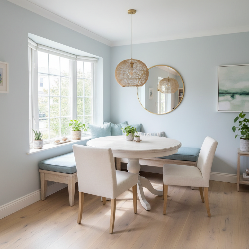 The color palette you choose for your *petite dining room can have a significant impact on how spacious it feels. Lighter colors reflect more light, making the room feel open and airy, while darker colors can absorb light and make a small space feel even smaller. That’s why it’s generally recommended to opt for a light and bright color palette when decorating a small dining room. Soft neutrals and pastels are increasingly popular choices for creating a sense of calm and openness in interior design.